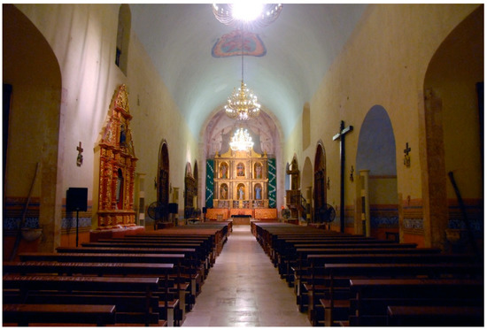 Nave, Showing All Seven Retablos of the Ex-convento of San Miguel de Arcángel, Mani. Photograph created by and used with Permission of Niccolò Brooker.