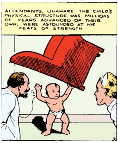 Joe Shuster, Infant Superman (panel No. 3), 1938. Siegel and Shuster (June 1938), “Superman”, Action Comics #1 (Siegel and Shuster 1938a, p. 8). © DC Comics.