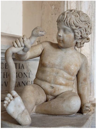 Herakles as a Boy Strangling a Snake, 2nd Century CE, Marble, Rome: Musei Capitolini. Photo: Wikipedia Commons, Public Domain.