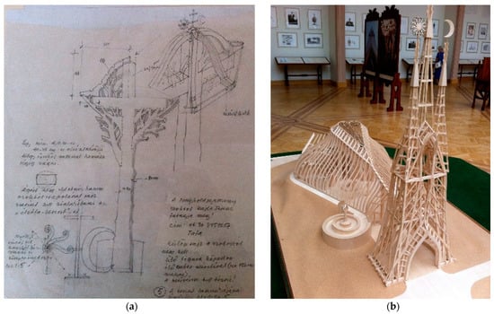 (a) Drawings by Imre Makovecz; photo: Leszek Świątek; (b) Model of Holy Spirit Church in Paks; photo: Leszek Świątek.