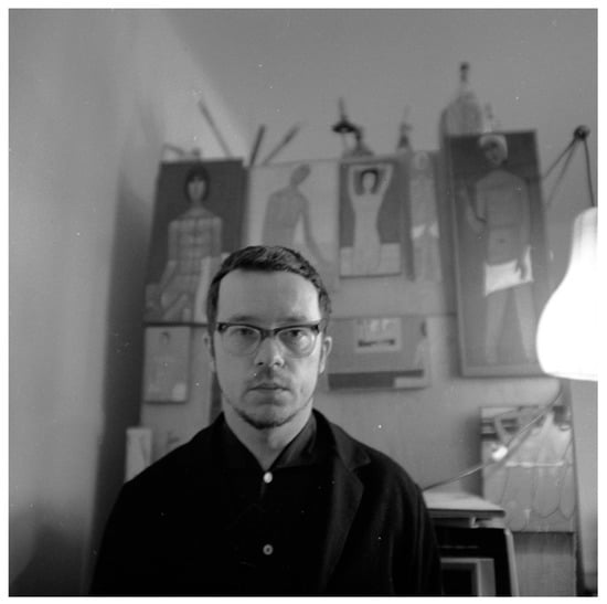 Jerzy Nowosielski (Figure 1) was born in Kraków; he was the son of a Ruthenian father and a Polish mother with Austrian roots. He started his artistic education during the German occupation, in 1940–1942 at the State School of Artistic Crafts in Krakow (Kunstgewerbeschule). In the years 1942–1943, as a novice, he was in the Monastery of St. John the Baptist in Uniów near Lviv belonging to the Greek Catholic Studite Order. Soon after, he left the monastery for health reasons. After the war, he completed his education at the Academy of Fine Arts in Krakow and joined the reactivated Krakow Group, one of the most important avant-garde artistic formations in Poland. During the period of socialist realism imposed by the communist government, he temporarily withdrew from official artistic life and worked as a scenographer at the Łódź Puppet Theater. He represented Poland at the Venice Biennale in 1956. At the end of the 1950s, after a decade of declared atheism, he joined the Orthodox Church. He co-founded the reactivated Krakow Group. In 1962, he took the chair at the Academy of Fine Arts in Krakow. He remained active as an artist until the end of the 1990s and left behind a rich and diverse artistic legacy. The main themes of Nowosielski’s work included: geometric abstractions, nudes, landscapes, still life, and architectural fantasies. Along with secular painting, he dealt with religious art: icons, polychrome, and church architecture (Czerni 2018a). Jerzy Nowosielski was an artist with broad intellectual horizons and an exceptional level of artistic awareness, which is why it is difficult to indicate all of the stimuli that shaped his painting style. His development was undoubtedly influenced by the Krakow avant-garde milieu and its prominent members, such as Tadeusz Kantor, Maria Jarema, Jonasz Stern, or Tadeusz Brzozowski. He was inspired by, first of all, old icon painting, as well as works by Utrillo and Modigliani, naive painters, e.g., Nikofor Krynicki, cubism, constructivism and surrealism, and even the painting by Francis Bacon—somehow defining himself in opposition to him. As a painter who situated himself on the border between east and west, he also admired the figure and art of El Greco.