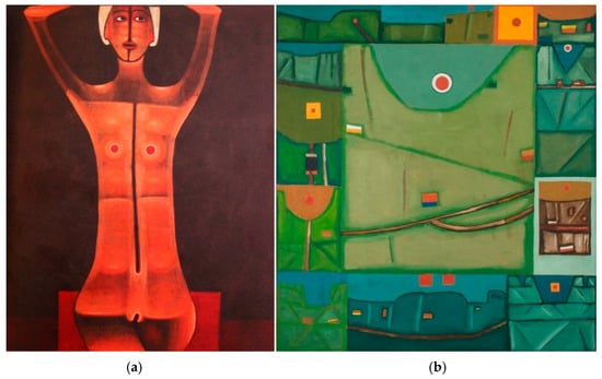Jerzy Nowosielski: (a) nude in a bonnet, 1976, oil on canvas. National Museum in Wrocław. Photography by M. Gardulski/Galeria Starmach. Reproduced with permission. (b) Sunrise in the Bieszczady Mountains, 1963, oil on canvas. Zachęta Gallery in Warsaw. Photography by M. Gardulski/Galeria Starmach. Reproduced with permission.