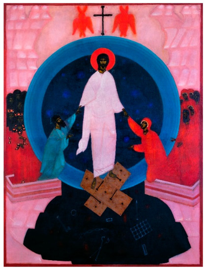 - Tarkowski, Łukasz. 2016. Problem Kanonu Bizantyńsko-Ruskiego w Twórczości Sakralnej Jerzego Nowosielskiego. Master’s thesis, John Paul II Catholic University of Lublin, Lublin, Poland. [Google Scholar]