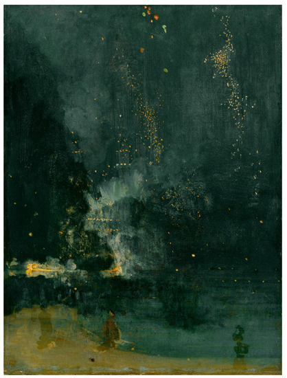 James McNeill Whistler, Nocturne in Black and Gold: The Falling Rocket, 1875, oil on panel, 60.2 × 46.7 cm. Detroit Institute of the Arts, Gift of Dexter M. Ferry, Jr., 46.309.