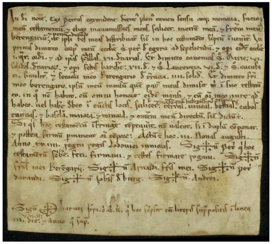 - Puig, Pere, Vicenç Ruiz, and Joan Soler. 2001. Diplomatari de Sant Pere i Santa Maria d’Ègara. Terrassa, 958–1207. Barcelona: Fundació Noguera. [Google Scholar]