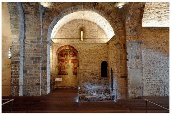 The Romanesque church of Santa Maria de Terrassa was consecrated on the first of January 1112 (Figure 6 and Figure 7). In the following year, on 18 October 1113, Bishop Ramon Guillem of Barcelona donated the church of Santa Maria de Terrassa to the congregation of Saint-Ruf at Avignon and its abbot Oleguer, and a community of Augustinian canons belonging to the priory of Sant Adrià de Besòs was establish there (Puig et al. 2001, doc. 104).8
