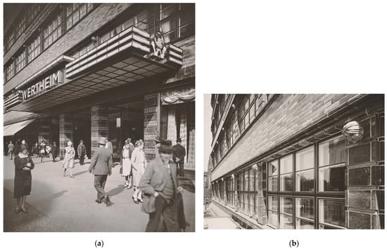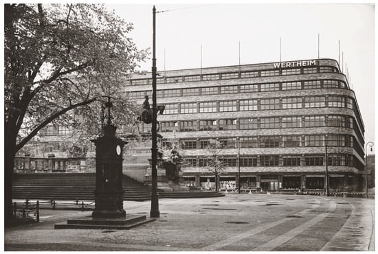 - Blunk, Erich. 1927. Erweiterung des Warenhauses Wertheim in Berlin. Berlin: Deutsche Bauzeitung, vol. 25, pp. 217–24. Available online: http://delibra.bg.polsl.pl/Content/13965/P-388_1927_25.pdf (accessed on 30 October 2021).