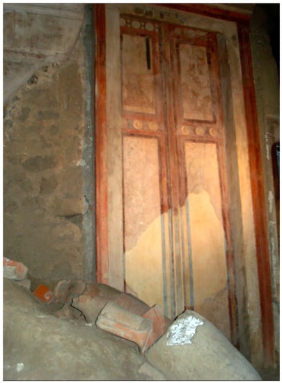 - D’Auria, Dora. 2011. La Protocasa del Granduca Michele (VI, 5, 5): Funzionalità degli ambienti, tipologie edilizie edecorazioni parietali. In Pittura Ellenistica in Italia e in Sicilia: Linguaggi e Tradizioni. Atti del Convegno di Studi, Messina, 24–25. Settembre 2009. Edited by Gioacchino Francesco La Torre and Mario Torelli. Rome: L’Erma di Bretschneider, pp. 447–58. [Google Scholar]