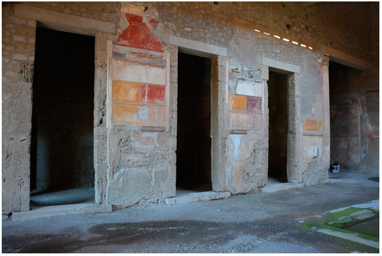 - D’Auria, Dora. 2014. Gli apparati decorativi delle case di livello medio a Pompei in età ellenistica. In Antike Malerei zwischen Lokalstil und Zeitstil. Akten des XI. Internationalen Kolloquiums der AIPMA, 13–17 September 2010 in Ephesos. Edited by Norbert Zimmermann. Wien: Verlag der Österreichischen Akademie der Wissenschaften, pp. 55–62. [Google Scholar]