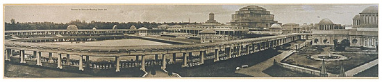 In 1912, Hans Poelzig became involved in the design process of the Breslau Exhibition Grounds, for which he created the Pavilion of the Four Domes (Figure 5) and the pergola (Figure 6). His work, like the hall, shows raw concrete from the outside, the only difference being that some of the architectural elements were developed using stone techniques.