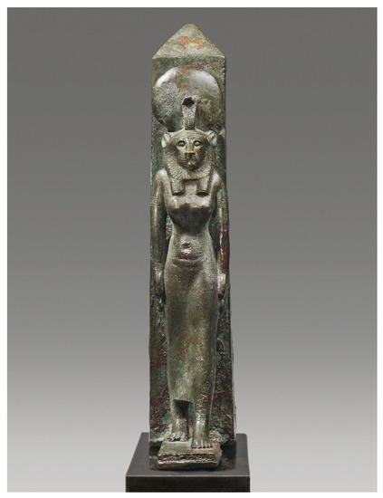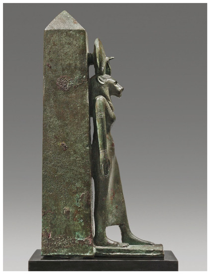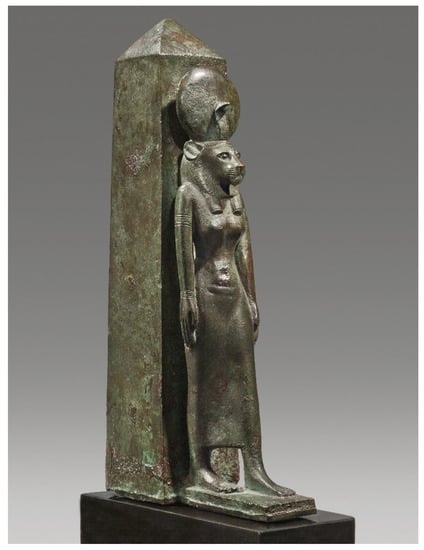 | 30 | Leiden, Rijksmuseum van Oudheden, F 1953/5.2: https://www.rmo.nl/collectie/collectiezoeker/collectiestuk/?object=13099 (accessed on 24 September 2021) incorrectly identifies this image as Sakhmet, apparently ignoring the inscription on the base. That error is corrected in the catalogue entry by (Schneider and Raven 1981, pp. 134–35, no. 137). |