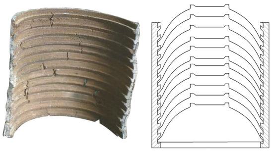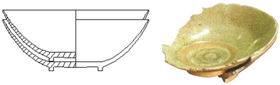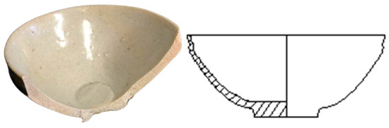 Section 4, the ceramic ware types used in Xiaopi kilns are mainly living utensils such as bowls, tea lanterns, and plates. Therefore, in order to further clarify the specific process characteristics of Xiaopi kilns, the author carried out a structural analysis of these bowls and plates. It is found that the ceramic ware used in Xiaopi kilns is made by wheel drawing, and the wheel string pattern can be seen at the bottom and abdomen; the mouth edge and upper abdominal wall of the device type are thin, exerting a feeling of lightness; the lower abdominal wall and bottom are made thick, thus appearing stable and heavy. The accessories at the mouth of the bowl are made by single-mode and manual kneading; the bottom of the green body is thick and hard, and the shape is stable and dignified. The overall shape is uniform, light, and beautiful, and the shape is practical, generous, thick, and durable, as shown in