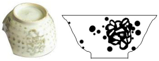 Table 2, the results show that the largest diameter of the bowl mouth is 23.10 cm, the smallest diameter is 3.5 cm, the average diameter is 13.1042 cm, and the standard deviation is 3.22457cm. The maximum bottom diameter of the corresponding bowl bottom is 13.30 cm, the minimum bottom diameter is 2.4 cm, the average bottom diameter is 5.1056 cm, and the standard deviation is 1.74887 cm. The highest height of the bowl is 8.7 cm, the lowest is 2.3 cm, the average height is 5.3292 cm, and the standard deviation is 1.33685 cm. It can be concluded that the traditional bowl type of Xiaopi kiln ceramics is mainly composed of largemouth bowls and small-bottom bowls, having characteristics of a “hat type”, which is also in line with the modeling characteristics of folk bowls in the Northern Song Dynasty.