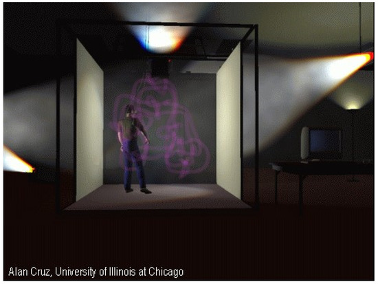 - DeFanti, Tomas, Daniel Acevedo, Richard Ainsworth, Maxine Brown, Steve Cutchin, Gregory Dawe, Kai-Uwe Doerr, Andrew Johnson, Chris Knox, and Robert Kooima. 2010. The Future of the CAVE. Open Engineering 1: 16–37. [Google Scholar] [CrossRef] [Green Version]