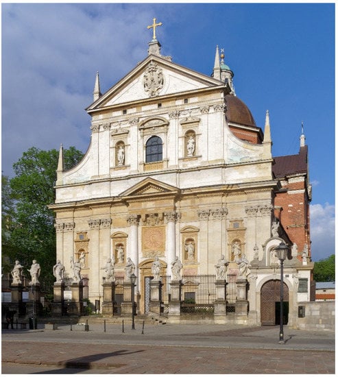 - Małkiewicz, Adam. 1967. Kościół śś. Piotra i Pawła w Krakowie–dzieje budowy i problem autorstwa. Zeszyty Naukowe Uniwersytetu Jagiellońskiego. Prace z Historii Sztuki 5: 43–86. Available online: https://digi.ub.uni-heidelberg.de/diglit/phs1967/0097 (accessed on 14 June 2021).