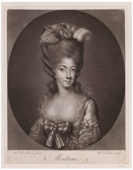 William Pether, Madame, 1778, mezzotint, 349 × 278 mm. Royal Collection Trust, London. Credit line: Digitized by Royal Collection Trust/© Her Majesty Queen Elizabeth II 2022.