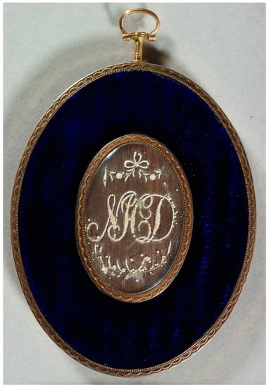 - Pointon, Marcia. 2001. Surrounded with Brilliants: Miniature Portraits in Eighteenth-Century England. The Art Bulletin 83: 48–71. [Google Scholar] [CrossRef]