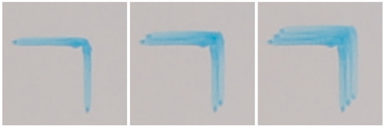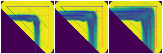 We have also tested the applicability of this method for , , and corners, as can be seen in Figure 16, Figure 17 and Figure 18, respectively. In all cases, convergence is achieved and the desired angle is produced at the required location. All shown images are taken directly from the robot’s visual feedback system. The resolution achieved is 1 pixel per .