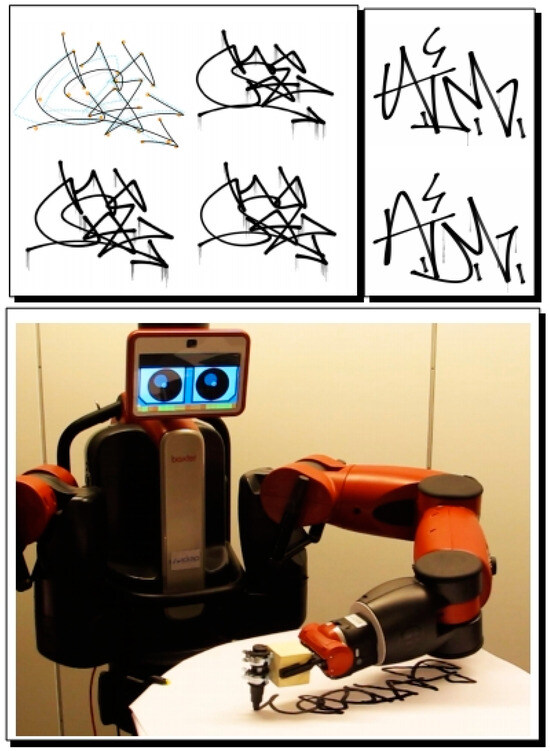 - Berio, Daniel, Sylvain Calinon, and Frederic Fol Leymarie. 2016. Learning dynamic graffiti strokes with a compliant robot. Paper presented at 2021 IEEE/RSJ International Conference on Intelligent Robots and Systems (IROS), Daejeon, South Korea, September 27–October 1; pp. 3981–86. [Google Scholar] [CrossRef]