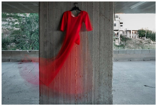 The dialectical contrasts inherent in Ziyan’s photographs are reflections of contradictions in her personal life. Her road from a rigid, traditional, patriarchal society to photography and creative art was not an easy one, a fact she reveals in a 2018 interview titled “I Gave Up a Private Life for Art” (Weinberg 2018). Although she rebelled against the traditions in which she was raised, they remain a concrete presence, an anchor of reality, both in her photographs and in her life, much like the column in Red Dress. The constant friction between the artist and society affords her works their most profound meaning. In the catalogue of the exhibition “Crystal Palace” at the Umm el-Fahem Art Gallery in 2018, Sayid Abu Shaqra wrote: “I found in her contrasting feelings and desires: on the one hand, a desire to preserve tradition and a sense of belonging, and on the other hand, a desire to break through the barrier of repression that verges on a sense of dislocation. In effect, the contradictory desires stem from a sense of dislocation” (Abu Shaqra 2018, p. 21).