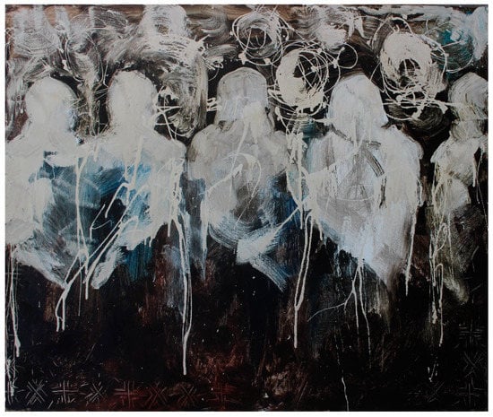Similar visual codes can be found in the work of another artist, Hayam Mustafa. As with Ziyan, Musafa’s work is located at the intersection of modern Israeli society and conservative Druze communities. And like Ziyan’s “cleaning women”, often women in her works resemble abstract, unidentified spots, where the hidden outweighs the visible (Berkowitz 2018). In these examples (Figure 11 and Figure 12), women appear with their backs to the viewer, revealing a resemblance in visual language to Ziyan’s abstract female spots. In both cases, these visual codes convey synergy between contradictory existential questions such as progress versus tradition and the subjugation of personal identity in favor of the communal-versus-individual self-expression. However, each of the artists injects an entirely different sense of association into the discussion. Thus, similar visual codes have other contexts, and their interpretations differ accordingly.
