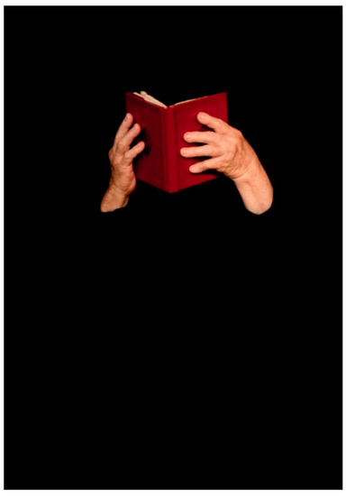 Once again, although the woman’s name appears in the title, neither her face nor her body can be seen. Only her hands holding the book are lit up. Here too, Ziyan hides the figure, representing it solely by means of an object (the book), even though her religious status could be indicated by visual elements of her appearance.19 As with the rest of the photographs, concealing the figure adds a mystical level of meaning to the picture.