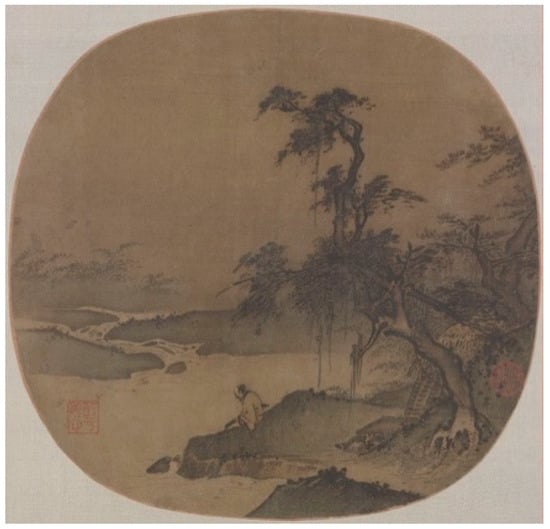 Recluse playing qin by the water (临流抚琴图). Xia Gui. Palace Museum, Beijing.
