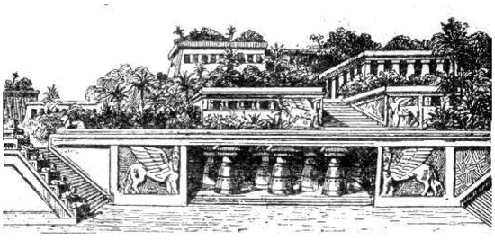 The Vision of Babylon Garden. 1912. https://pl.wikipedia.org/wiki/Plik:Ogrody_semiramidy.jpgimage (accessed on 16 July 2022). From book published in 1912 (Petit Larousse).