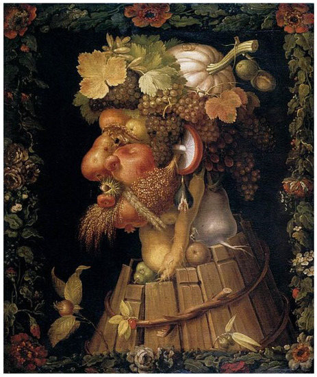 Arcimboldo, Giuseppe. 1573. Automne. https://upload.wikimedia.org/wikipedia/commons/9/90/Giuseppe_Arcimboldo_-_Autumn_-_WGA00812.jpg (accessed on 18 July 2022).