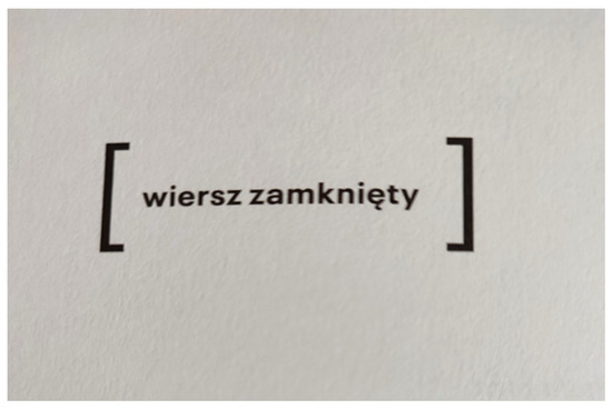 Gutorow, writing about Miłobędzka’s poetry-creating power, draws attention to her desire to reach such a point of speech, which is the absolutization of speech or ultimate point (Gutorow 2011, p. 290). It seems that the “closed poem” is an example of just such attainment of speech, although even here, through the play of graphic (visual) closure, one may be tempted to make ambiguous interpretations for the reason that in the vertical line, there is an opening —light and space above the poem and below the poem. If the poem is a key, and we turn it from horizontal to vertical in the likeness of a key, we open the closure.