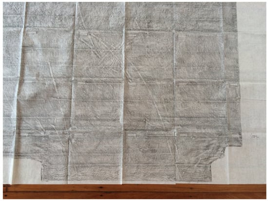Another key work, The floor we walk on (Figure 3 and Figure 4), is a 94 m2 drawing of the floor of our house in Auckland. It is a series of over a thousand graphite rubbings, recording every accessible centimetre of the texture of the 1950s bungalow’s floorboards, creating a 1:1 drawing of the floor, compiled into the separate rooms, and contained in purpose-made covers. The work thematically engages with the intimacy between us as a couple and the space where that intimacy was, for a period, housed. This was echoed in the intimate process of the rubbing; as a form of drawing, it is centred on touch, press, and impression. The paper touches the surface it records and the graphite touches the paper and forces it into the contours of the floor, forcing the paper to briefly take the form of the floor; I held the graphite. It is a visual representation of the haptic. In other forms of drawing there is an interpretive gap, say, in the moments my eyes shift between the thing being drawn and the drawing. Rubbing, though, is a direct form of documentation of a surface that creates a ‘negative’ akin to a photographic negative. So, in these works, expanded life drawing is positioned as trying to affectively as well as ‘objectively’ (which I pick up on shortly) describe how we share time and where we share space in our relationship.