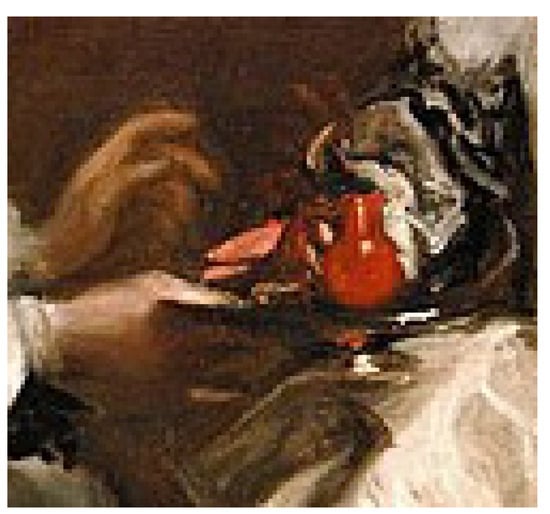 These issues do not bother de Diego. Her text builds up the, again, Foucauldian argument by which the palace’s room becomes text-like: ‘a space in which the Same and the Other can comfortably meet … That space is, no doubt, a linguistic space.’ (p. 155) She doubles down, never forgetting she is talking about a painting, and thus integrating the visual aspect into the case: