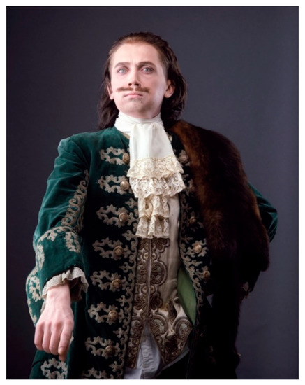 | 5 | “… the biography of Vladislav Mamyshev-Monroe is as if deliberately built according to all the canons of the picaresque novel, and in the fate of the artist one can trace many parallels with the fates of the most celebrated adventurers of the XVIII century: Giacomo Casanova, Stepan Zannovich, Alessandro Cagliostro, and especially the chevalier d’Eon, the brave dragoon captain in a woman’s dress, who carried out diplomatic missions for King Louis XV of France and the Russian Empress Elizabeth Petrovna. And in this context, it is not at all surprising that on a par with Hitler’s mask and Marilyn Monroe’s white dress, one of Mamyshev’s guises is that of an 18th-century aristocrat” (Kravtsova 2014). |