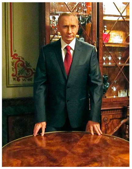 Nevertheless, the distance between the artist and the impersonated character, even one depicted satirically, remains unstable. Illuminatingly, when commenting on his impersonations of Putin (Figure 10) or Valentina Mativenko (at the moment, the governor of St. Petersburg) (Figure 11), Mamyshev emphasized the instant artistic metamorphosis that he experienced and that allowed him to “feel” his object from the “inside”: