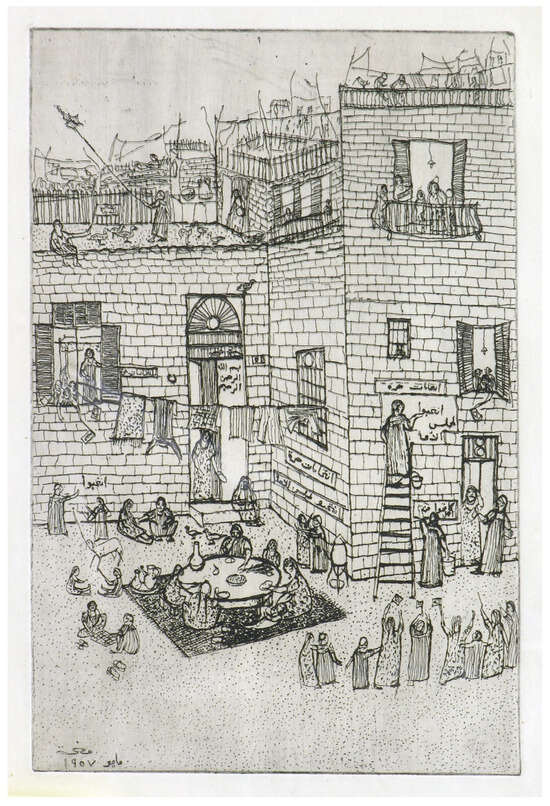 Menhat Helmy, The Alley (1956). Etching. Courtesy of estate of Menhat Helmy.