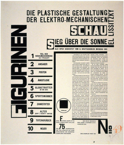 1965, 1966: El Lissitzky, Van Abbemuseum, Eindhoven, Kunsthalle Basel, Kestner-Gesellschaft, Hanover.1990, 1991: El Lissitzky: 1890–1941: Architect, Painter, Photographer, Typographer, Tretyakov Gallery, Moscow, Van Abbemuseum, Eindhoven, Fundaçion Caja de Pensiones, Madrid, Musée d’art moderne de la ville de Paris.2006: Plug In #6, Van Abbemuseum, Eindhoven.2009, 2010: Lissitzky+: Victory over the Sun, Van Abbemuseum, Eindhoven.2012, 2013, 2014: El Lissitzky, Ilya/Emilia Kabakov: Utopia and Reality, Van Abbemuseum, Eindhoven, Hermitage, St. Petersburg, Multimedia Art Museum, Moscow, Kunsthaus, Graz.2015: El Lissitzky: The Artist and the State, Irish Museum of Modern Art (IMMA), Dublin.2015, 2016: Positions #2, Van Abbemuseum, Eindhoven.2017: El Lissitzky, Tretyakov Gallery and the Jewish Museum and Tolerance Centre, Moscow.2017: Lissitzky en Oud in dialoog, Van Abbemuseum, Eindhoven.2018: Chagall, Lissitzky, Malévitch—l’Avant-garde Russe à Vitebsk 1918–1922, Centre Pompidou, Paris.2019: El Lissitzky, Danubiana Museum, Bratislava.Secondary Sources