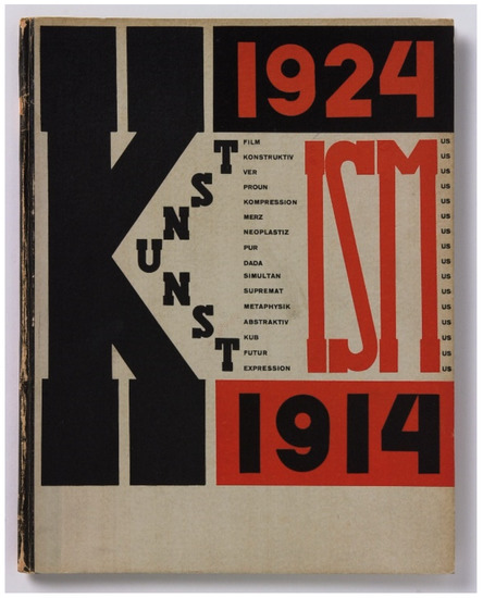 - Lissitzky, El, and Jean Arp. 1925. Die Kunstismen = Les Ismes De L’art = the Isms of Art. Erlenbach-Zürich: Eugen Rentsch. [Google Scholar]