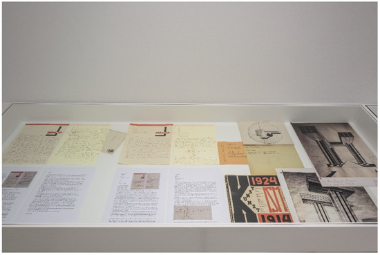 In 2017, on the occasion of the 100th anniversary of the Dutch artistic movement De Stijl, curator Diana Franssen and librarian Willem Smit organised an exhibition in the museum library on the correspondence of Lissitzky with his Dutch colleague and friend, the architect J.J.P. Oud (Figure 35). This correspondence, acquired in 1970, is archived in the Van Abbemuseum and only accessible for research purposes. The written texts in German were now transcribed and translated into Dutch in a publication (Franssen 2017). This exchange of letters and postcards, which took place between 1923 and 1928, not only enables us to follow Lissitzky on his tour through Europe but also to see the two friends’ opinions on the situation in art and politics at the time and how they developed and discussed artistic theories.