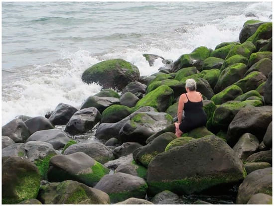 And yet you are so impenetrable, so profoundly frustrating, recalcitrant, ubiquitous, shrouded in lithic obduracy! (Cohen 2015, pp. 16, 50). My very presence seems to have no effect; you are not moved in the least. You simply endure in blunt reality (Cohen 2015, p. 16). Your greatest achievement is to simply exist, firmly, which, as resistance to time is your power and agency (Latour 1993). Living at two vastly different scales of time, two durational temporalities, this rapport reminds me of the way my partner and I lived for years, out of synch, out of pace, as salty stoic bodies in a mundane, dilatory romance (Cohen 2015, pp. 10, 29). Might this be geophilia—the unrequited love of stone, “an urge to affiliate with other forms of life, to natural love of life for life, matter’s promiscuous desire to affiliate with other matter regardless of organic composition or resemblance to human vitality” (Cohen 2015, p. 27)?