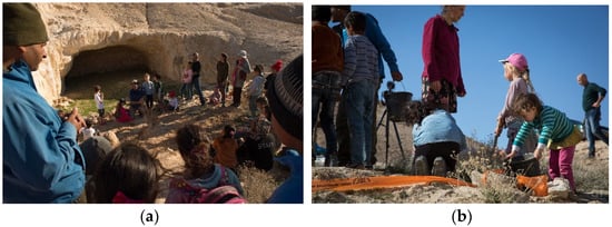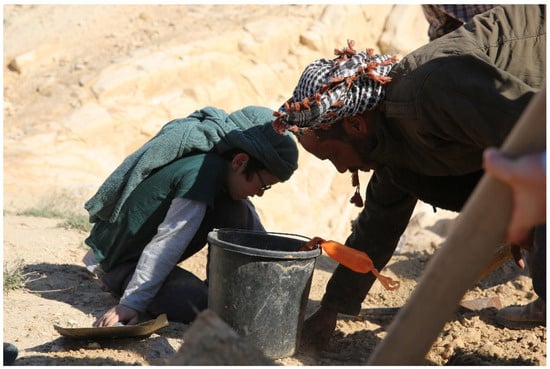 Figure 8). The second public operation (February 2020) was dedicated to a comprehensive cleaning of the cistern by Bedouin schoolchildren, in collaboration with archeologists and representatives from the Israel Antiquities Authority (IAA), under their community-educational practice of “adopting a site”, as part of an environmental studies program. The final goal of preparing the cistern for functional use was not achieved due to disagreements between the archaeologists and the Bedouins concerning suitable modes of intervention such as the use of modern mechanical instruments. Representatives of the Bedouin community aspired to significant intervention at the site in favor of its establishment as an active cistern that would collect runoff water during the winter. The IAA insisted on manual excavation. This created a state of action that was more symbolic of an open dialogue and study of local traditions and desert life, rather than a dynamic act of change in the site’s status (