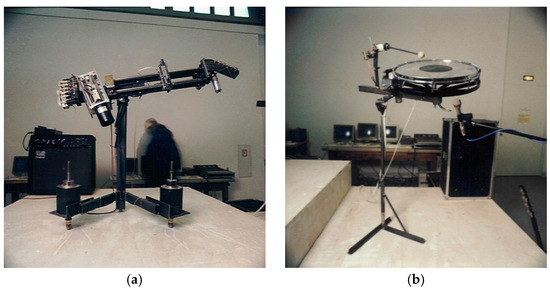 As artist and scholar Simon Penny notes, the 1990s were marked by a consolidation of computational art practices that nonetheless remained in a fluid and open-ended phase, following the more loosely exploratory gaseous phase of the 1980s and preceding the current crystallization of new media into stabilized forms through disciplinary fields such as video games, virtual reality, and, more recently, so-called “AI-art” (Penny 2017). The groundbreaking work of Nicolas Baginsky with artificial neural networks exemplifies that era of creative explorations. In 1992, Baginsky launched an artistic project that was visionary due to the originality of both its form and method. In Berlin, he created the robot guitar Aglaopheme (Figure 1a), which became the first performer of a self-learning robotic band developed throughout the 1990s, soon joined by the robot drum Thelxiepeia (Figure 1b), robot bass Peisinoe, and eventually other artificial agents, forming the autonomous robotic band The Three Sirens (Figure 2).