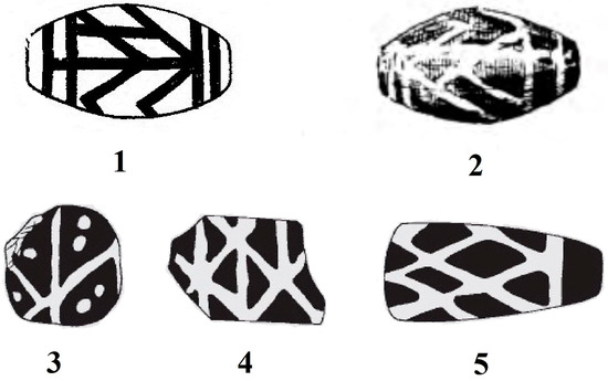 2.1. Etched Stone Bead (Bleached Carnelian Bead) (Figure 3)