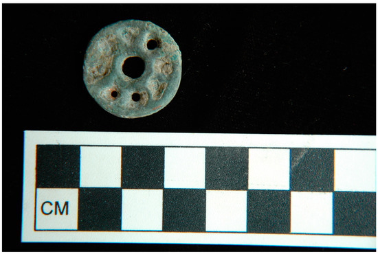 2.4. Bone Disk with Three Birds’ Heads with Beaks (Figure 8)