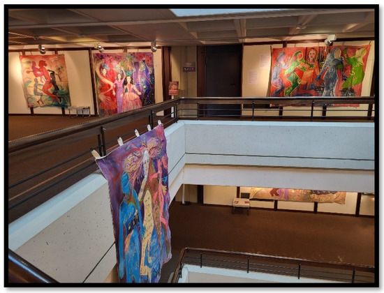 The use of arts-based methods in refugee and migration studies is primarily driven by the intent to create new combinations of research approaches and to inform representations through interdisciplinary collaborations between academic researchers and non-academic stakeholders. Arts-based methods are proven to be an additional tool for data collection, which position the participant at the center of knowledge creation. So far, studies on art and migration consider either migrants who are artists—i.e., artists, who have some form of education or at least experience in art production—or migrants who have joined art groups, such as theatre, dance or music groups. There has been increasing interest in recent years in researching arts, culture and migration (Martiniello 2022) to examine immigrants’ and ethnicized minorities’ cultural and artistic contributions to existing popular culture (Martiniello 2015). This led to the investigation of the role of art as a tool for political mobilization and resistance (Tripp 2012, 2013; Hasso and Salime 2016; Shanneik 2022) as well as political participation (Martiniello and Lafleur 2008) or as means to participate in and belong to a community (Damery and Mescoli 2019). However, the intersection between artistic techniques and refugees’ lives and their displacement experiences on a bodily and emotional level has not yet been investigated. Different from other studies, the refugees we worked with had no prior experience using artistic practices, nor had they created art themselves before. The work they have co-produced using body mapping and AR is part of a traveling exhibition1 that seeks to shape the public perception of refugees and intends to influence public discourses on refugee women in particular.