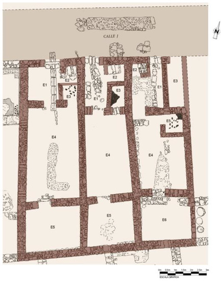 Finally, it is worth stressing that the arrabal was not surrounded by a wall, although the doorjambs found on both ends of Street C confirm that it was shut during the night. No doorjambs to close Street E have been found in Street I, but their existence cannot be ruled out. The absence of a wall facilitated the attack, destruction, and sudden abandonment of the arrabal during the fitna (1009–1031). This event is also attested in the record, as substantial levels of fire have been found in several houses.16