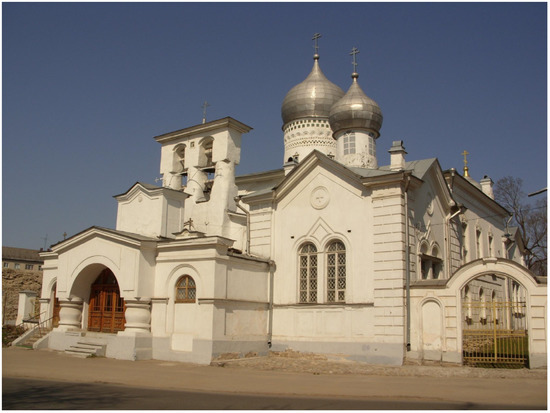 - Gavrilov, S. A. 2011. Varlaama Khutynskogo Na Zvanitse [(Church of Saint) Varlaam of Khutyn on Zvanitsa (Street)]. Photograph. WIkimedia Commons. Available online: https://ru.wikipedia.org/wiki/Церкoвь_Варлаама_Хутынскoгo_(Пскoв)#/media/Файл:Варлаама_Хутынскoгo_на_Званице.JPG (accessed on 26 February 2023).