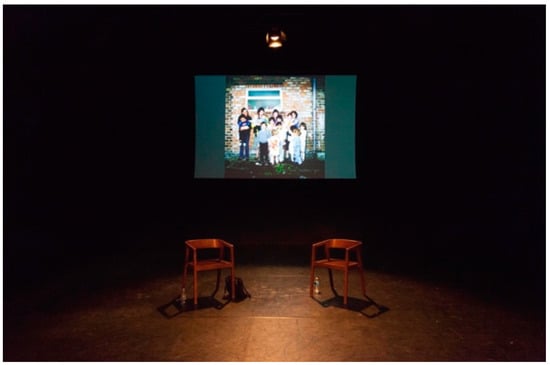 | 3 | The Lisa and John Slideshow was first performed at Derby Theatre on 25 March 2017 as part of the Format International Photography Festival. During 2017–18, the play was performed to varying audiences in professional theatres in the United Kingdom, including The Mac Theatre, Belfast, and The Regent Street Cinema, London. Additionally, a live rehearsal as a free public event was enacted as part of a series of research events at the London College of Communication, London, England. Available at https://ualresearchonline.arts.ac.uk/id/eprint/10873 (accessed on 22 August 2021). |
