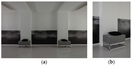 (a) Black noise of exhibition vinyl. (b) Seating. Photos by Luca Girardini.