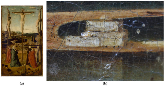 (a) Antonello da Messina, Crucifixion (1450s or 1460s), Sibiu, Brukenthal Collection: the panel painting features the representation of the medieval monastery of Holy Savior de lingua in the background (b) (credit: Brukenthal Museum).