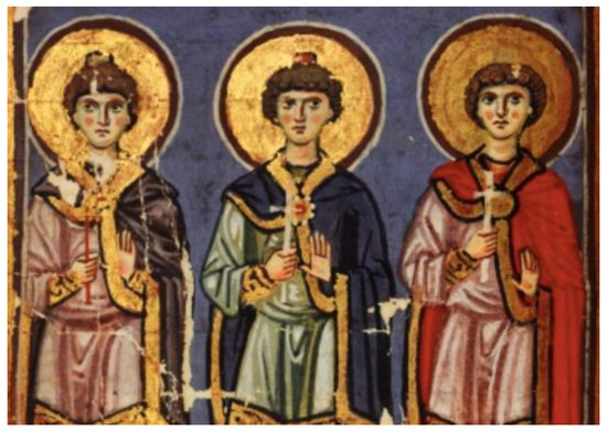 - Patterson Ševčenko, Nancy. 1990. Illustrated Manuscripts of the Metaphrastian Menologion. Chicago: University of Chicago Press, pp. 72–82. [Google Scholar]